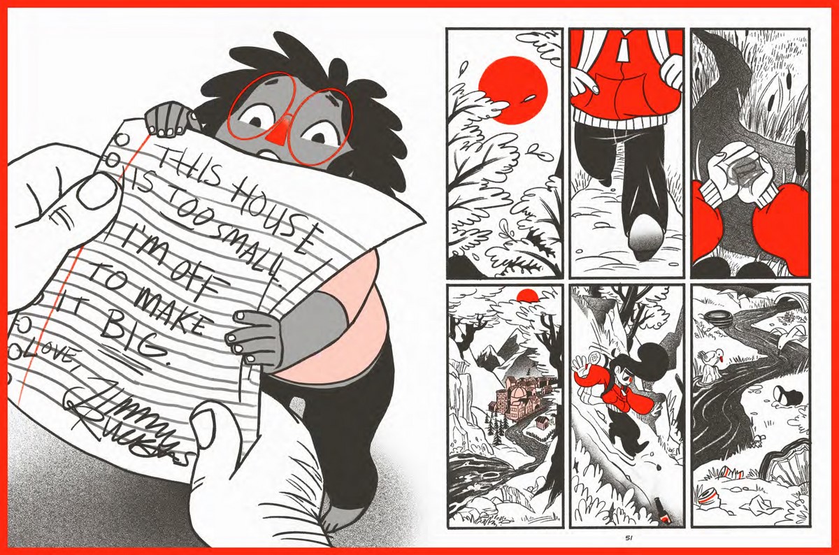 Jimmy dreams of one day being recognised as JIMMY RUCKUS, world famous featherweight, beloved by all but in his eleven-strong house, Jimmy is the last thing on anyone’s minds. He knows he’s destined for greatness, so he sets off to seek his fortune. What he finds are circus animals, painters, pirates and heavyweight champs, each one challenging Jimmy’s idea of success. By the end of it, Jimmy realises he has to decide whether living life fist first is all it’s cracked up to be. Lara Kaminoff’s stellar art style and sharp characters give us a snappy, fresh story about a scrappy kid who means well, but never quite gets it right.