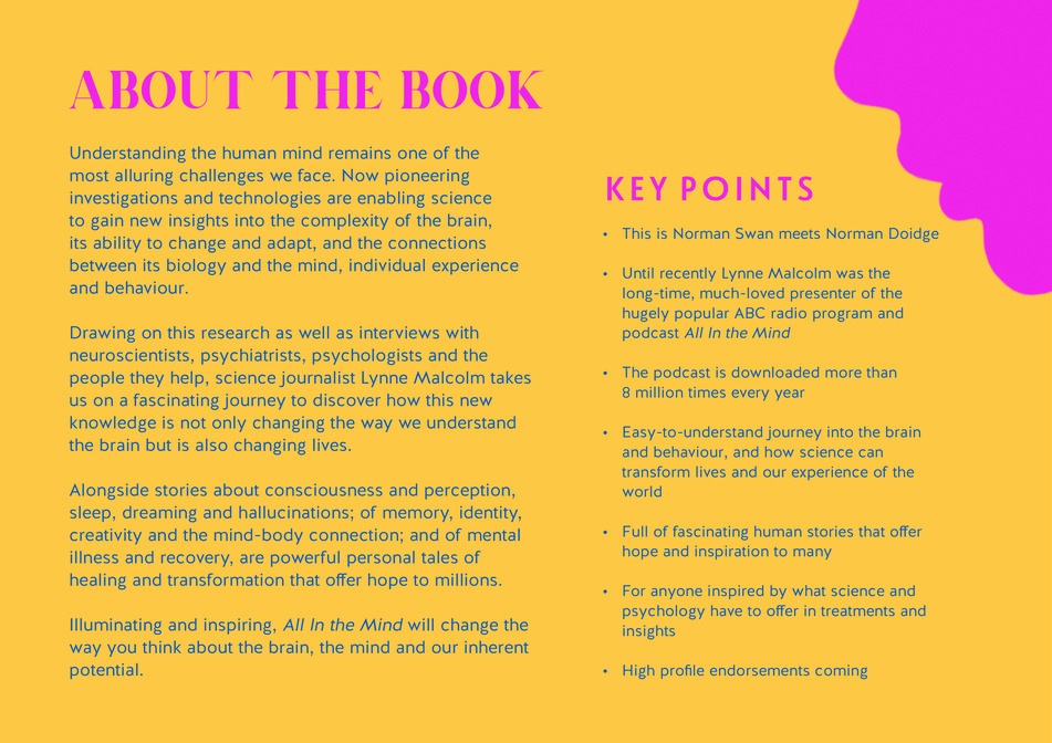 Illuminating and inspiring, All In the Mind will change the way you think about the brain, the mind and our inherent potential.