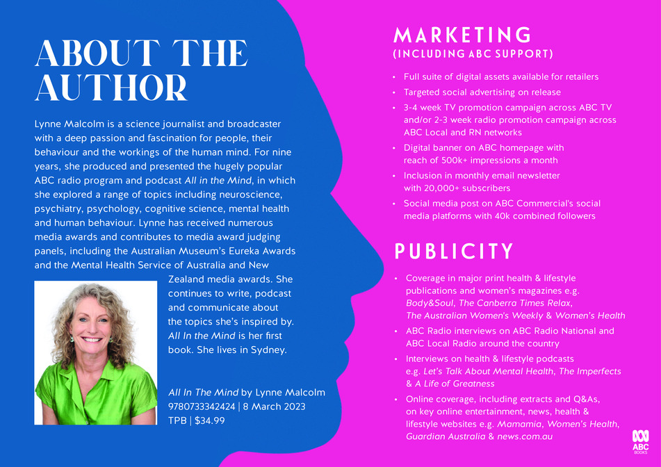 Drawing on this research as well as interviews with neuroscientists, psychiatrists, psychologists and the people they help, science journalist Lynne Malcolm takes us on a fascinating journey to discover how this new knowledge is not only changing the way we understand the brain but is also changing lives.