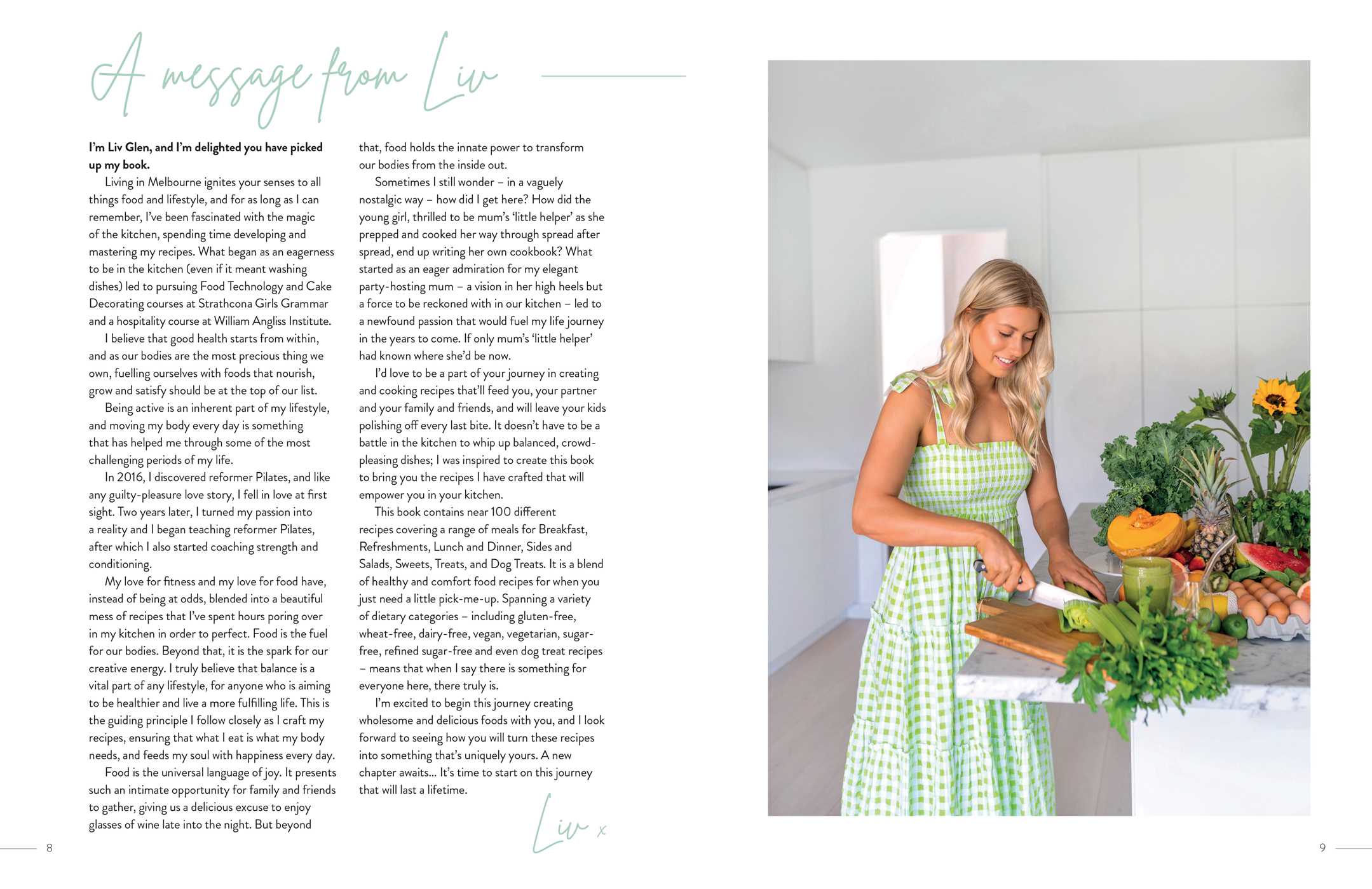 Liv Glen's Melbourne life has ignited her senses to all things food and lifestyle, and for as long as she can remember, she's been fascinated with the magic of the kitchen. Her passion for fitness and food have blended into the wholesome recipes and wellbeing advice shared in this book.