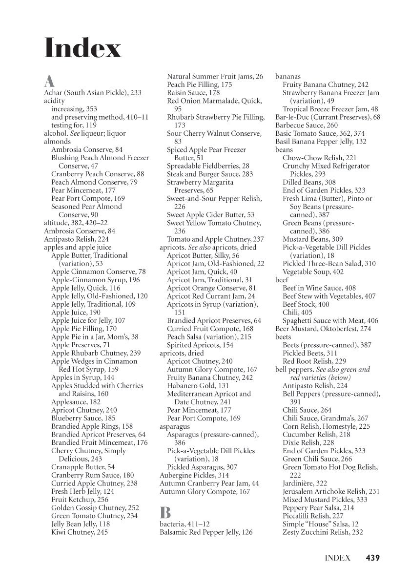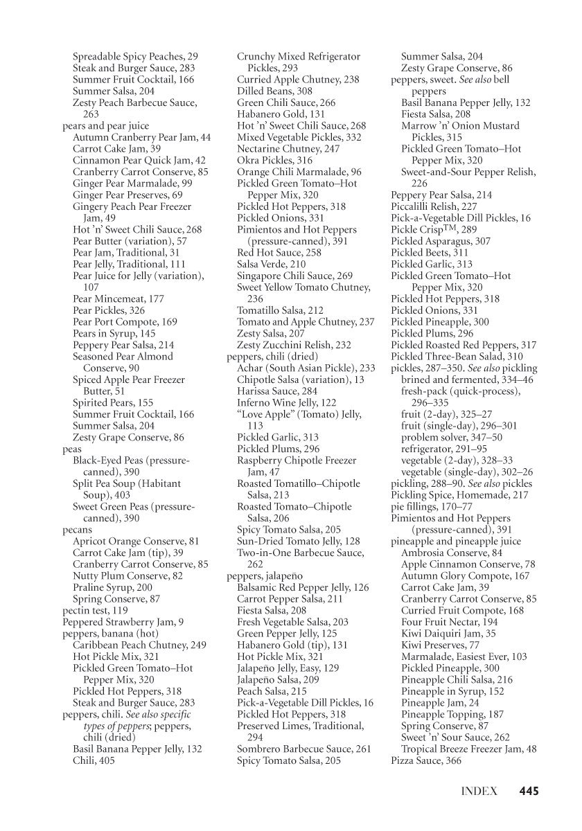 - An extensive glossary that identifies everything from ingredients to canning equipment to instructions.