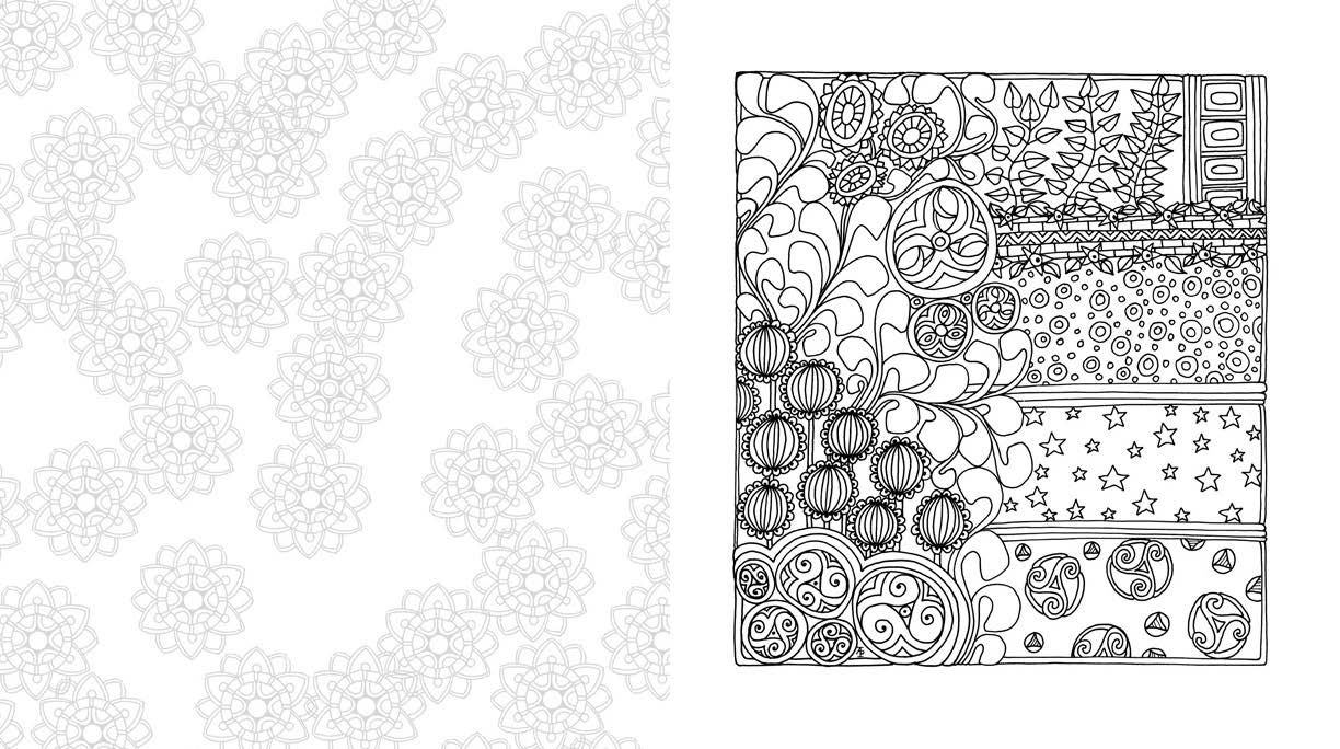 Let all the stress melt away as you color in designs that include: