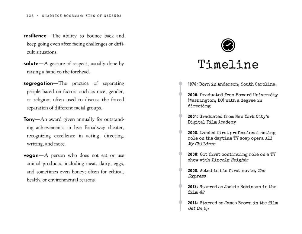Chadwick Boseman, King of Wakanda, A Hero On and Off the Screen, shows the power of grit, perseverance, and character in a dynamic biography for kids.