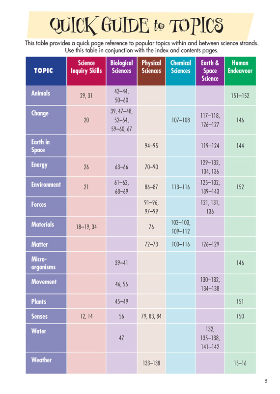 Science Understanding covers key content in the four major science strands: Biological Sciences, Chemical Sciences, Earth and Space Sciences and Physical Sciences