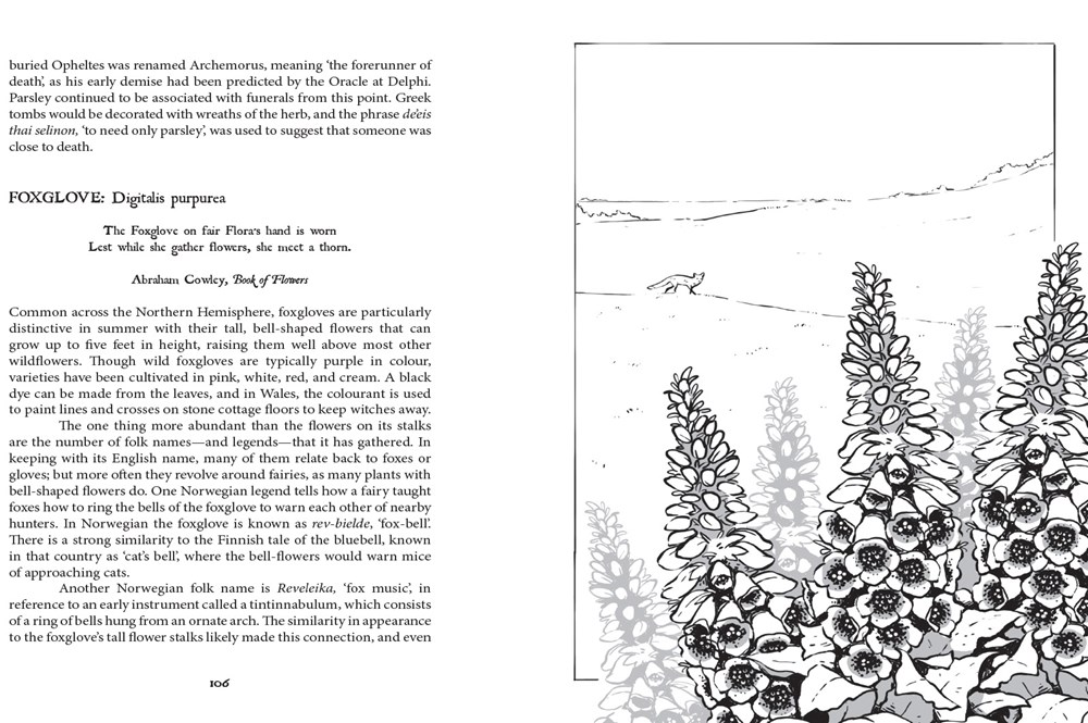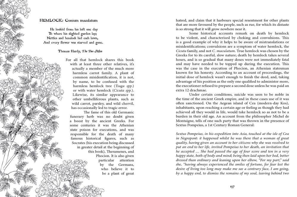 Going from A to Z, she covers everything from apple (think of the poisoned fruit in 'Snow White') and the hallucinogenic angel’s trumpet to laurel, which emits toxic fumes, to oleander (a deadly ornamental shrub), with each plant beautifully illustrated by the author herself, making it a spellbinding spell book and a feast for the eyes.