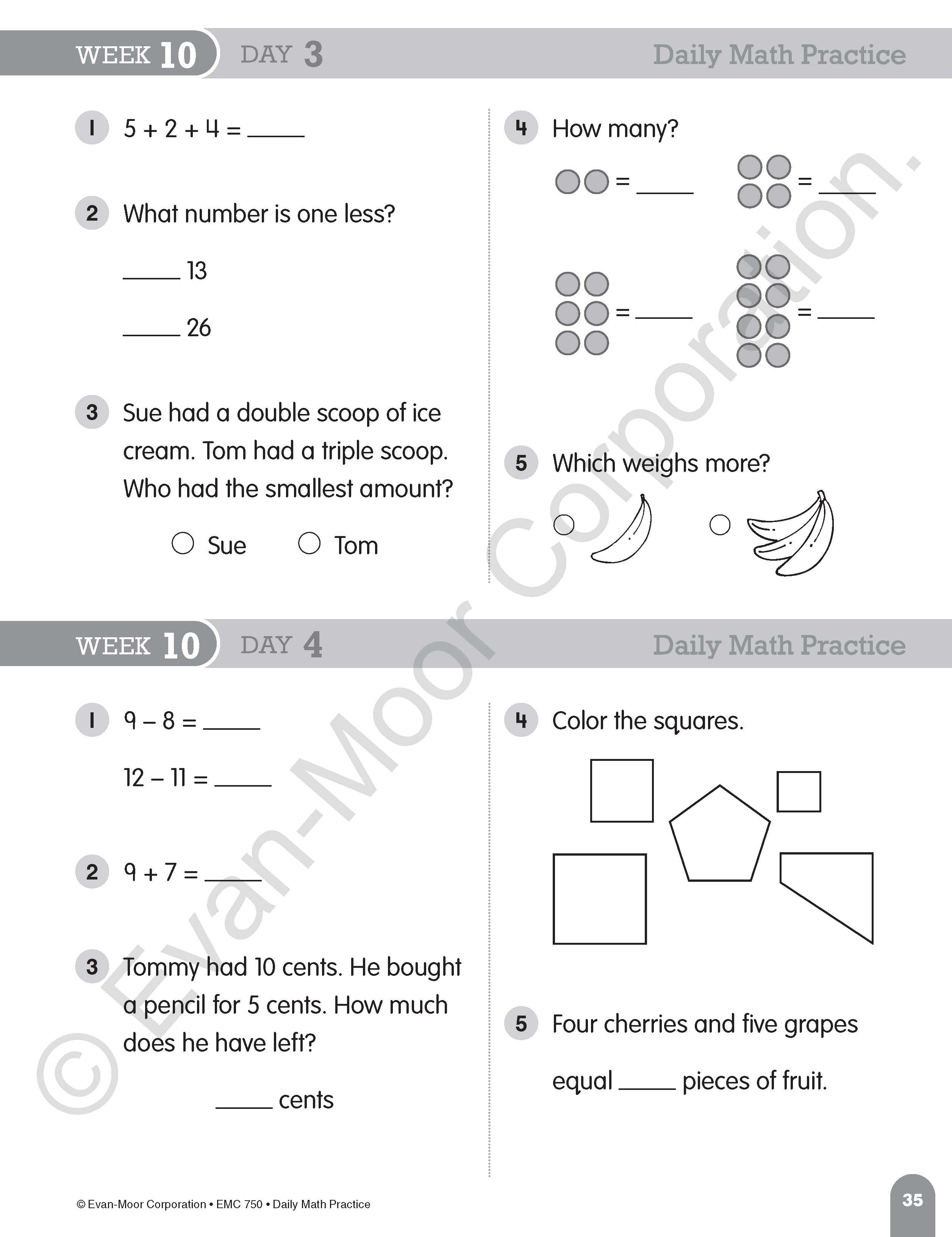 How it works: Students complete five short math problems on days 1-4. The day 5 activity provides more extensive practice and asks students to think critically.
