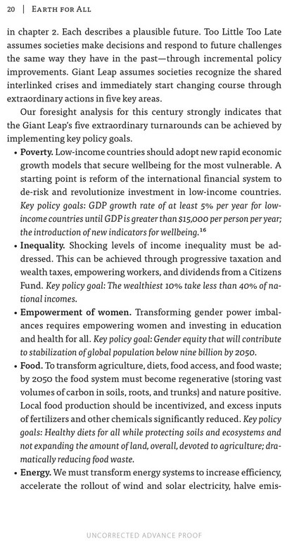 Written in an open, accessible, and inspirational style using clear language and high impact visuals, Earth For All is a profound vision for uncertain times and a map to a better future.