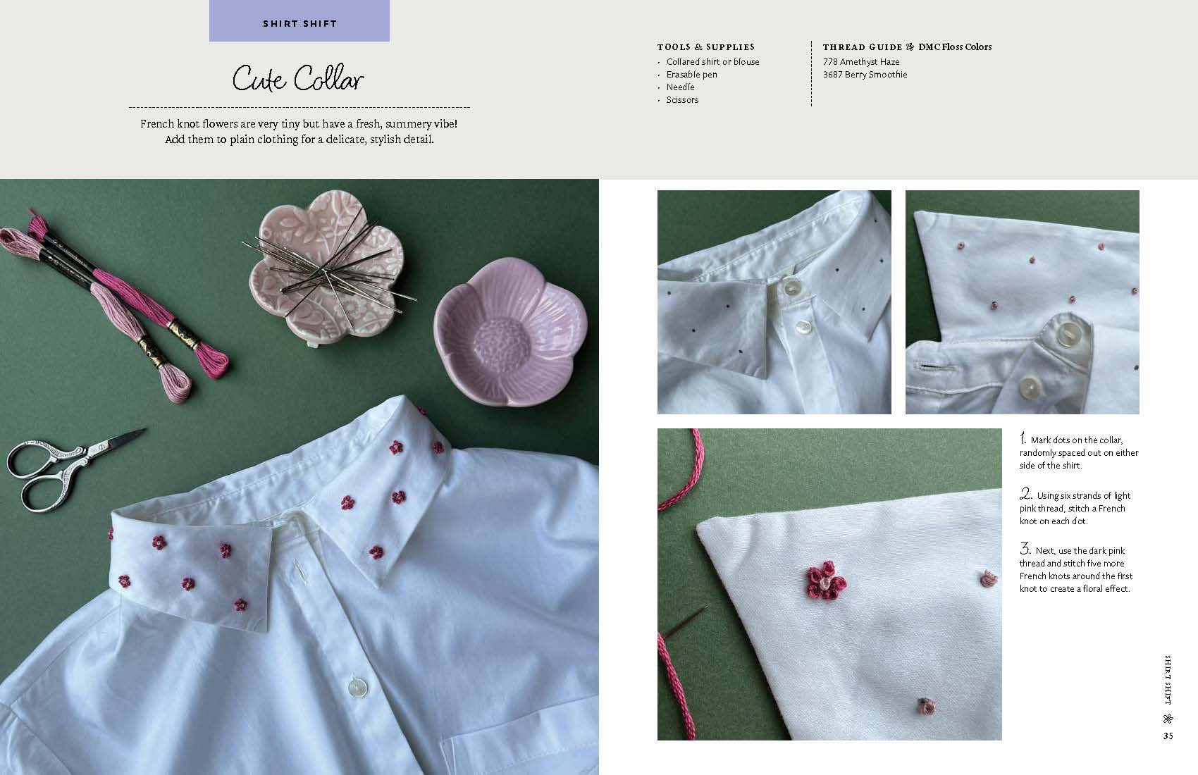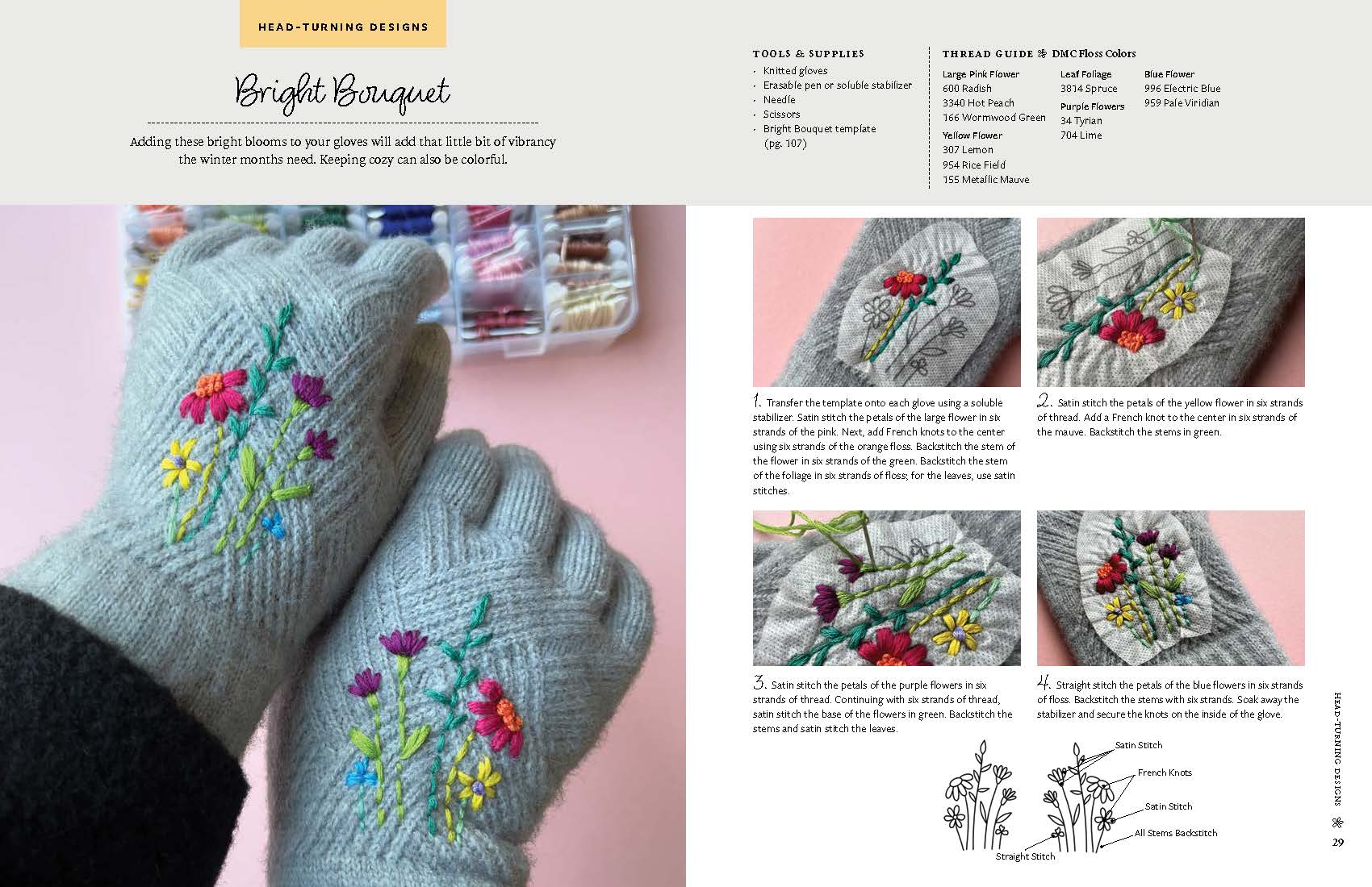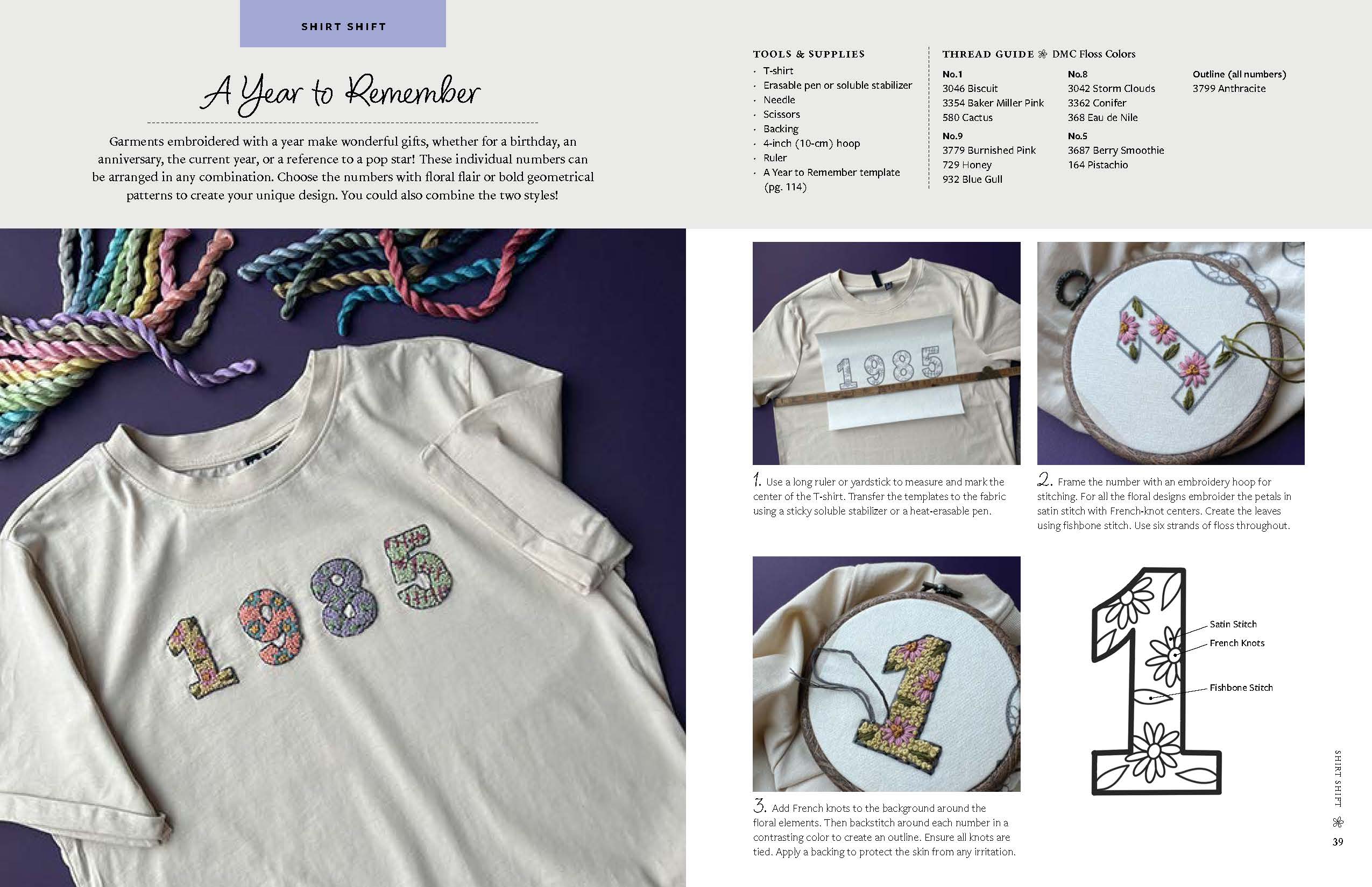 The book is thoughtfully organized to guide you every step of the way, from the basics of embroidery to more intricate designs. It starts with a comprehensive stitch guide, introducing essential techniques like the backstitch, satin stitch, French knots, and more. From there, you’ll move on to a collection of more than 30 embroidery projects, each with step-by-step photos and instructions to ensure success.