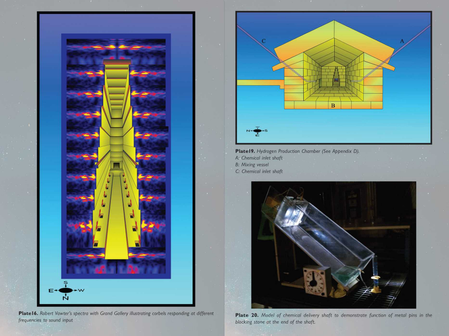 - Shares recent cutting-edge research on earthquake lights, acoustic frequency measurements and energy concentration within the Great Pyramid, the shafts of the Queen’s Chamber, the scorch marks that support the King’s Chamber explosion hypothesis, and the significance of the large void above the Grand Gallery