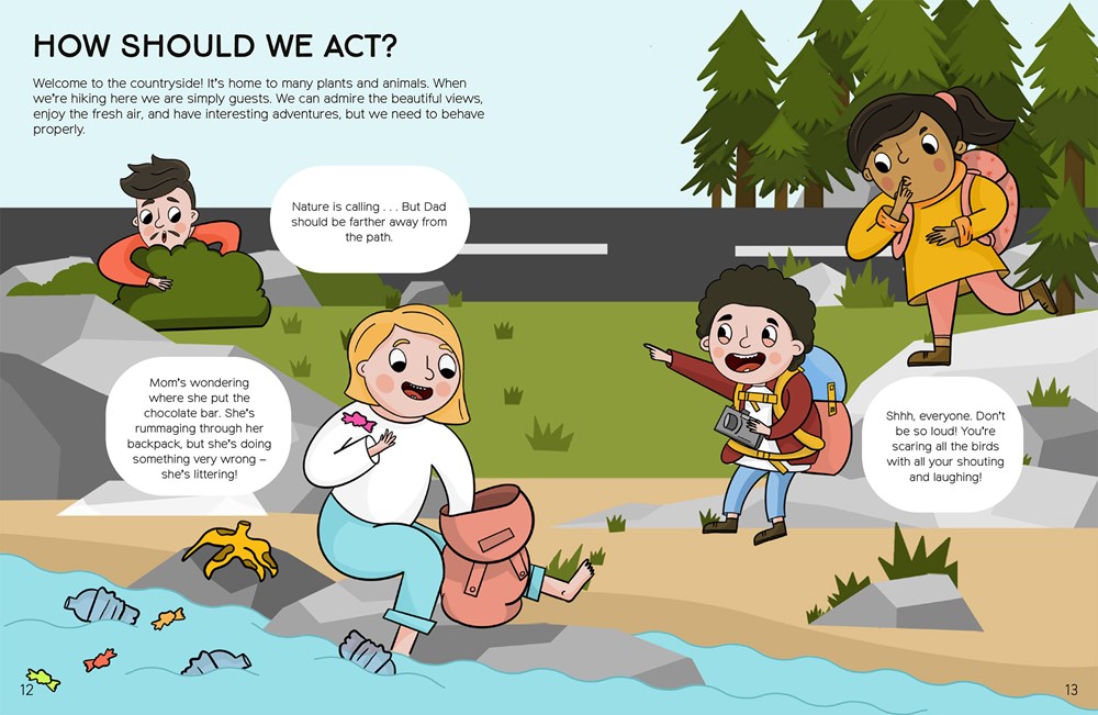 An interactive guide for young explorers that imparts essential outdoor skills, safety tips, and exciting challenges, ensuring a memorable hiking experience.