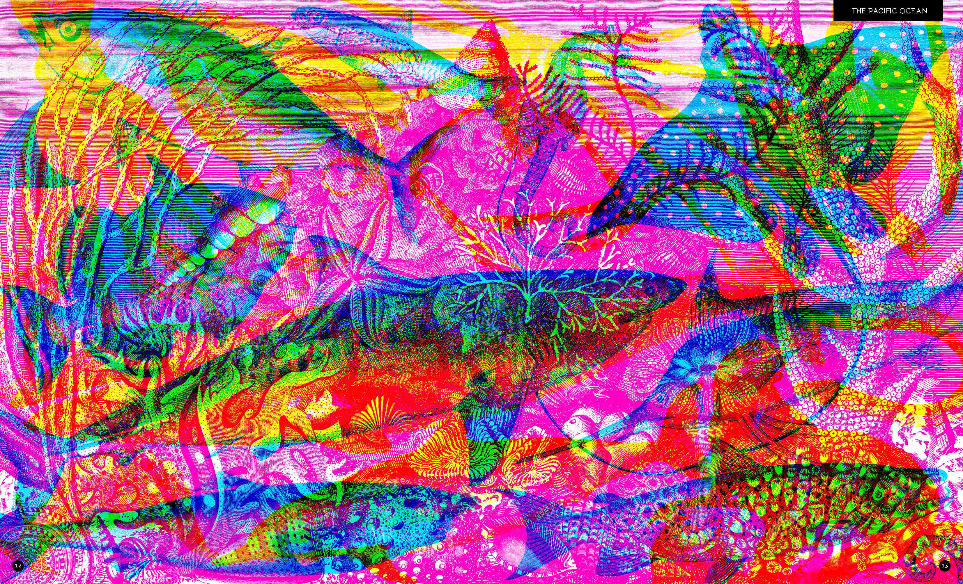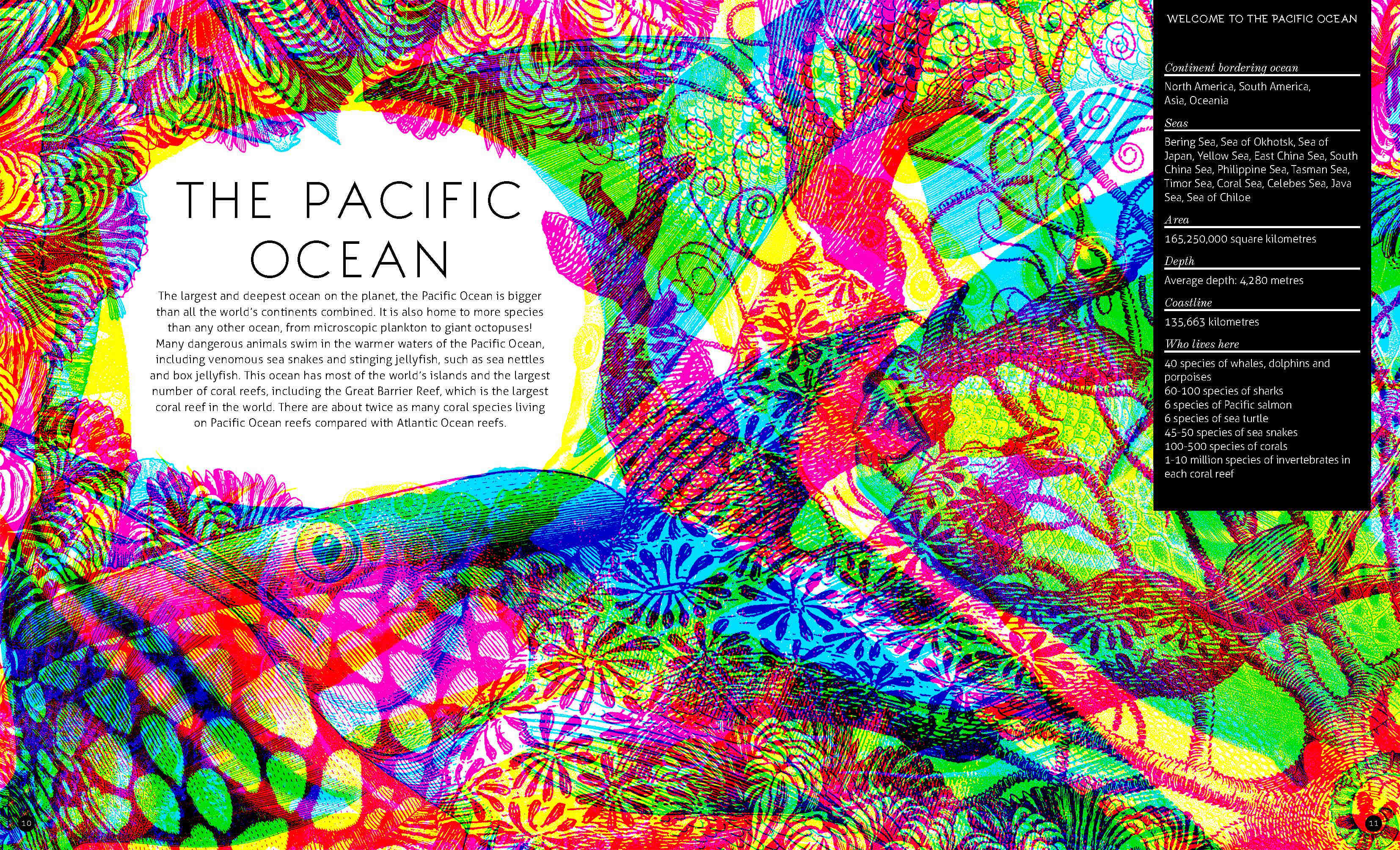 The ocean is a big, mysterious place. With the magic three-colour lens included in Illuminoceans, shed some light on the darkest depths of our watery world, and encounter the creatures, seascapes and surprising underwater features of all of Earths oceans.