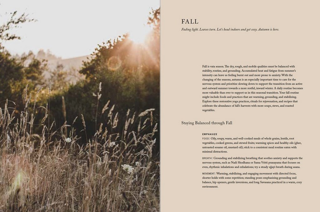 A hands-on holistic guide to self-care based on the ancient wisdom of Ayurveda-learn how to build a daily personal practice using food, breath, movement, and meditation to stay balanced and nourished through the seasons.