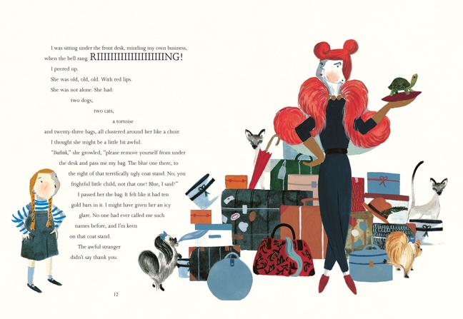 Mabel lives with her parents in The Mermaid Hotel, by the sea. Mabel likes to keep an eye on the comings and goings of all the guests. Then one day a particularly in-ter-est-ing old lady comes to stay. There is something very suspicious about her, with her growly voice and her heavy trunks and her beady-eyed tortoise.