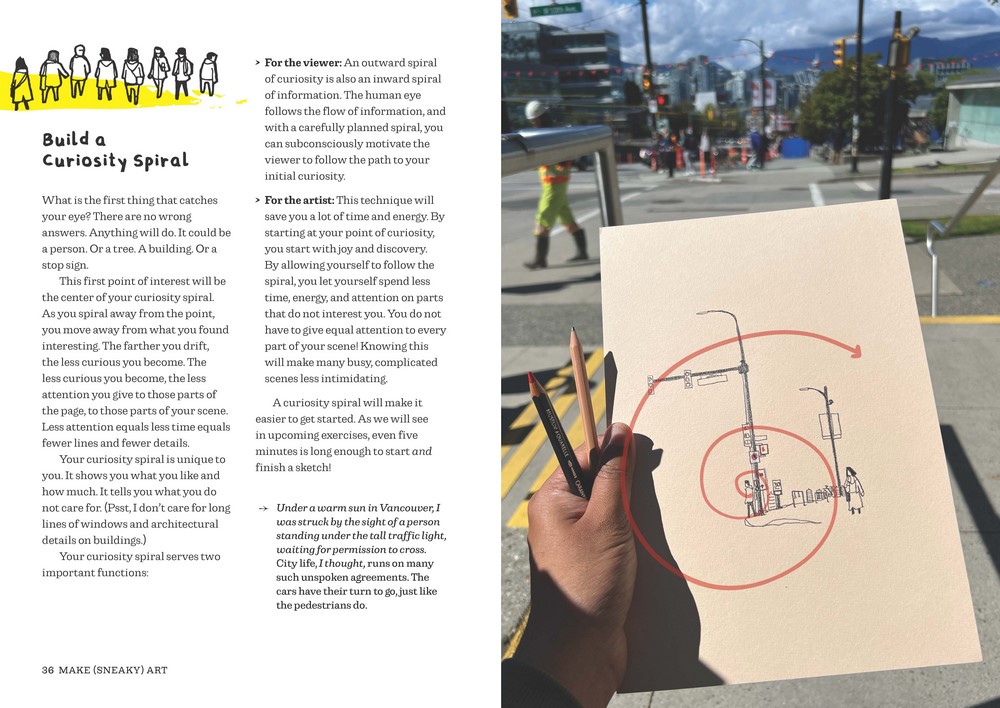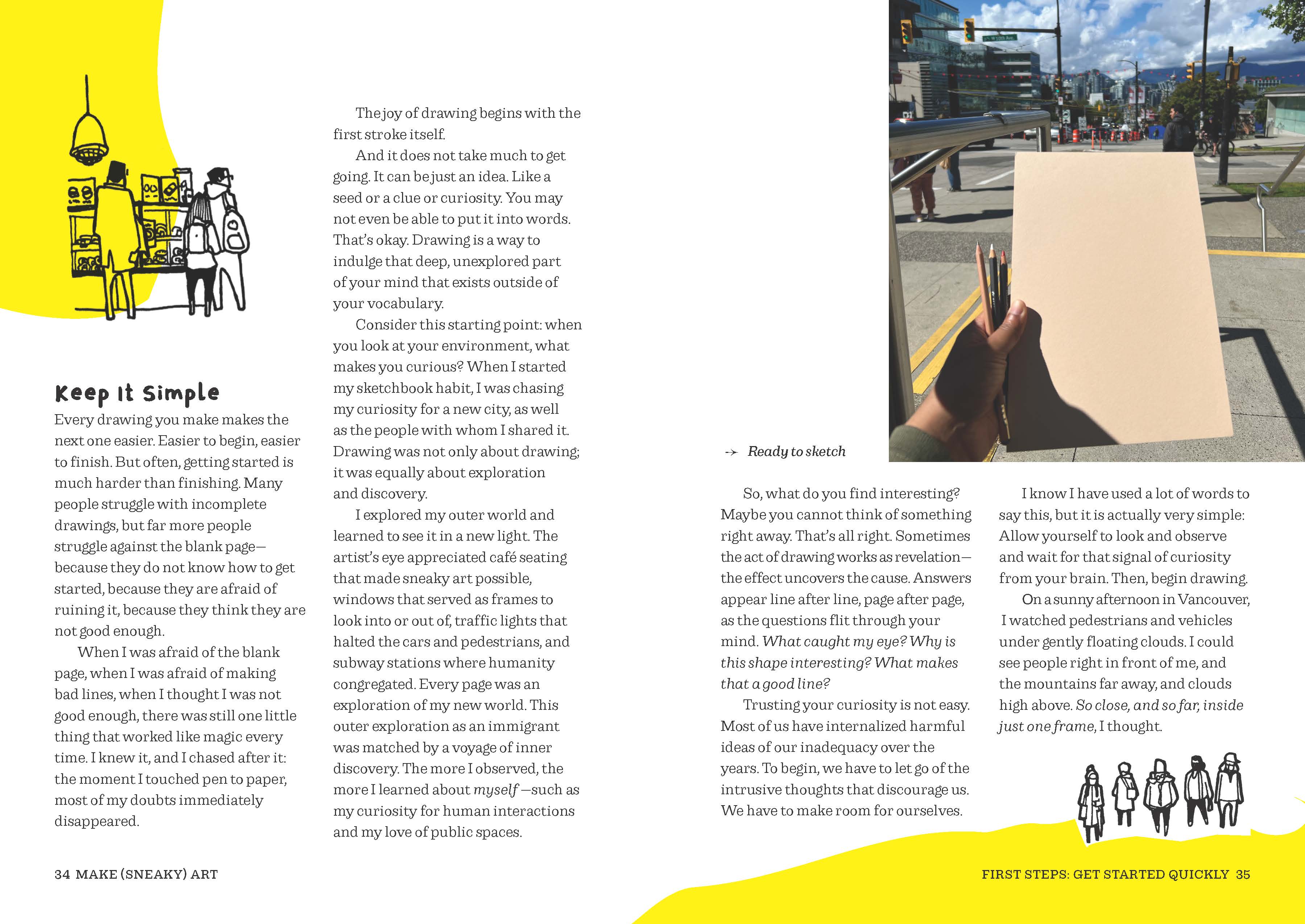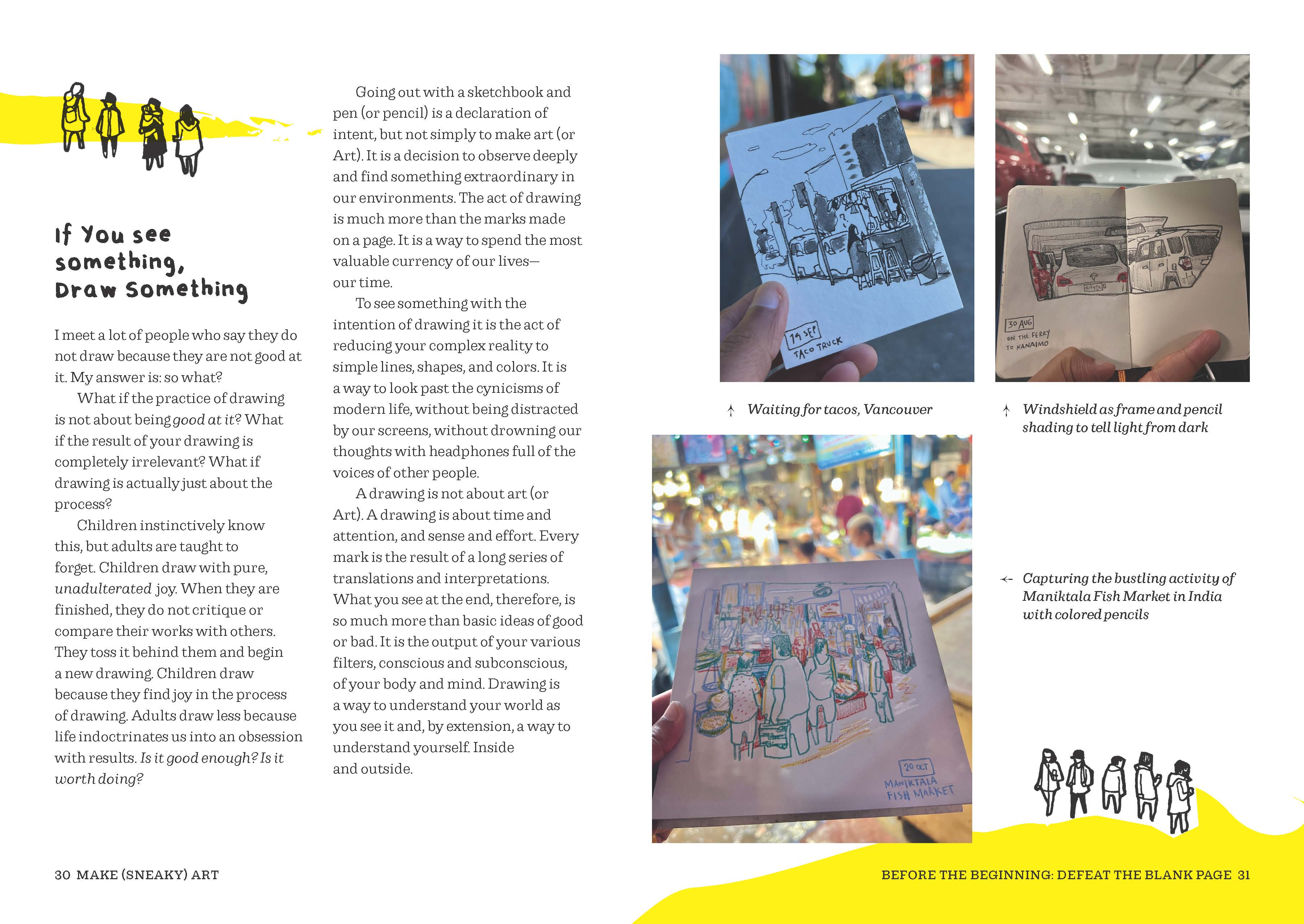Make (Sneaky) Art by Nishant Jain, The Sneaky Artist, is more than just a guide to sketching—it’s a philosophy for capturing the world around you with subtlety, mindfulness, and minimalism. After moving from India to the United States, Nishant began sketching as a way to feel at home in new surroundings, eventually making the leap from neuroscience student to full-time artist.
