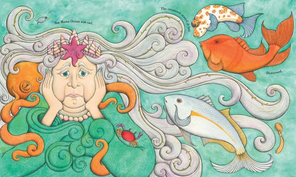 Mama Ocean had eyes that sparkled, like sunlight on the sea, and tresses which tumbled and trailed through the tides.