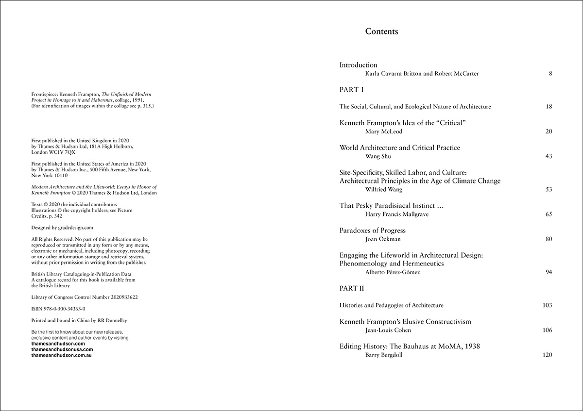The premise of Modern Architecture and the Lifeworld is rooted in Frampton's understanding of how architecture must engage with both cultural and constructional imperatives; and it addresses strategies for grappling with contemporary concerns such as regional identity amidst urban globalization, and tectonic culture and landform in the construction of place.