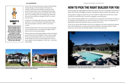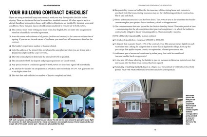 Nail your renovation without getting screwed has everything you need to think about before you get started on your home renovation and then while it's progressing. Learn from a professional builder and award-winning renovation specialist - Steve Burke - as he shares the tricks and traps to watch out for. The book includes invaluable advice on such topics as: how to make sure every step in your renovation is done in the right order; options for an environmentally sensitive renovation; checklists for kitchens, bathrooms and home extension projects; and how to avoid becoming a building horror story! With more than 20 years specialising in renovations, the authors have amassed a catalogue of stories and lessons learnt, met all sorts of interesting characters, and have discovered the many do's and don'ts of renovating homes. The book is also full of inspirational before and after photographs.