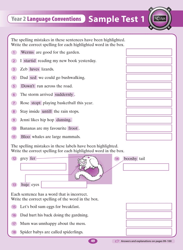 Excel Year 2 NAPLAN-style Literacy Tests includes: Thirty Mini Reading and Language Conventions Tests Three Mini Writing Tests Three Sample Tests each for Reading, Language Conventions and Writing Answers and Explanations for all tests