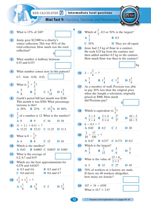 Excel Year 7 NAPLAN*-style Numeracy Tests includes: Thirty-two Mini Numeracy Tests Six Sample Numeracy Tests Answers and Worked Solutions for all tests The best test preparation for your child.