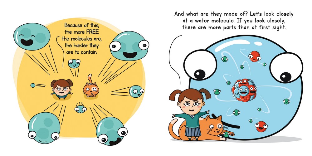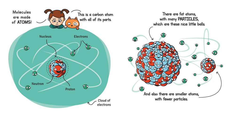 Valentina teaches Plank all about molecules, atoms, particles, photons, and matter., as well as solids, liquids, and gasses-and fusion and fission!