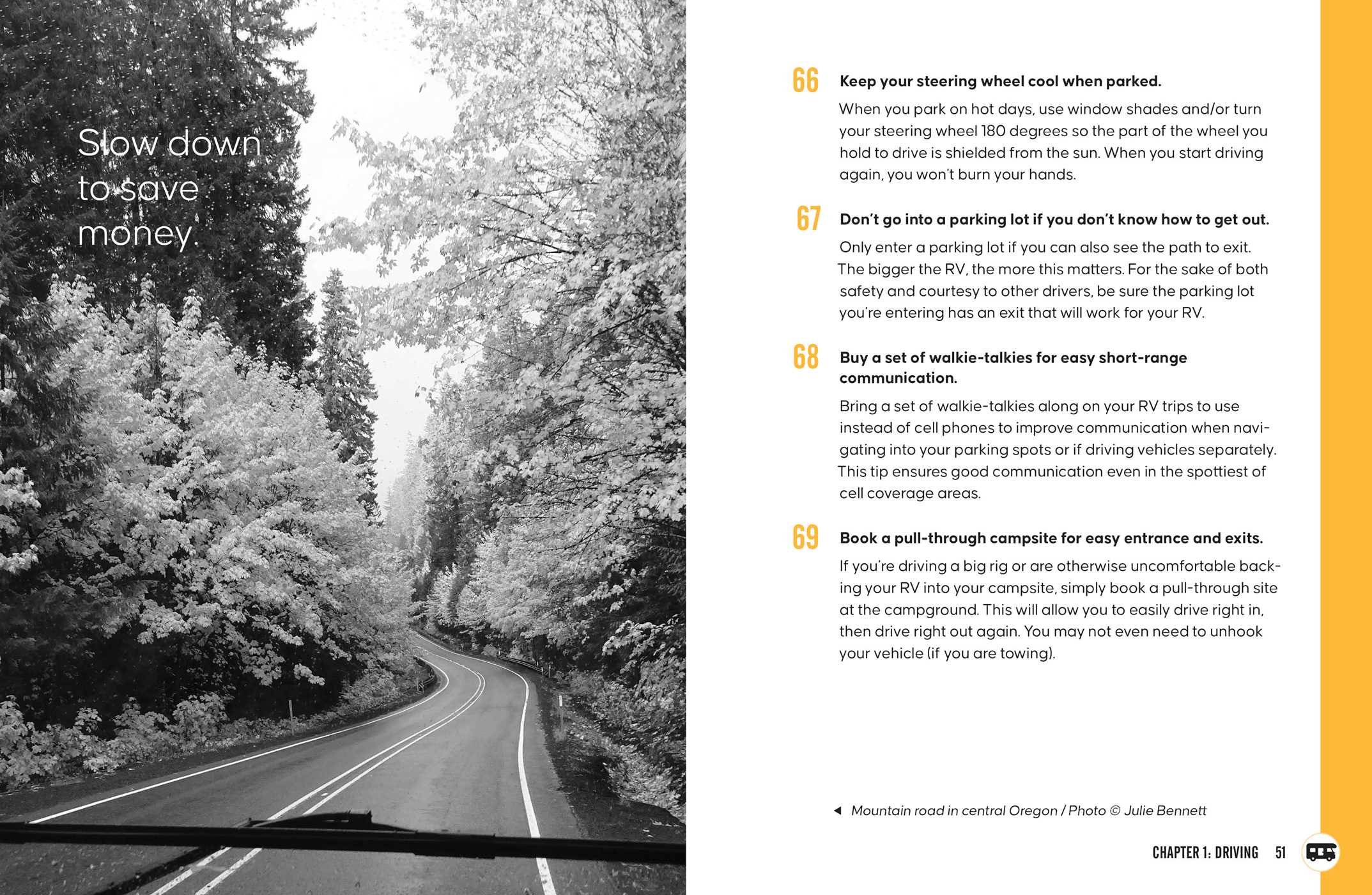Make your RV experience as easy, low-stress, and fun as possible with RV Hacks! Expert RVers Marc and Julie Bennett are here to help you make the road to adventure as smooth as possible with 400+ hacks for every RV challenge: Follow the rule of 3-3-3 to reduce stress and fatigue while driving. Remove dead bugs from the front of your RV, truck and windshield with dryer, sheets. Light campfires easily with a handful of corn chips wrapped in a paper towel. Keep a go bag ready with medications, a cell phone charger, and important documents if you're traveling during tornado or hurricane season. Use tension rods to keep things from falling forward in the fridge or on shelves. And more! Whether you're camping down the road or taking a cross-country RV trip, you'll never stress over an RV problem again with RV Hacks! Book jacket.