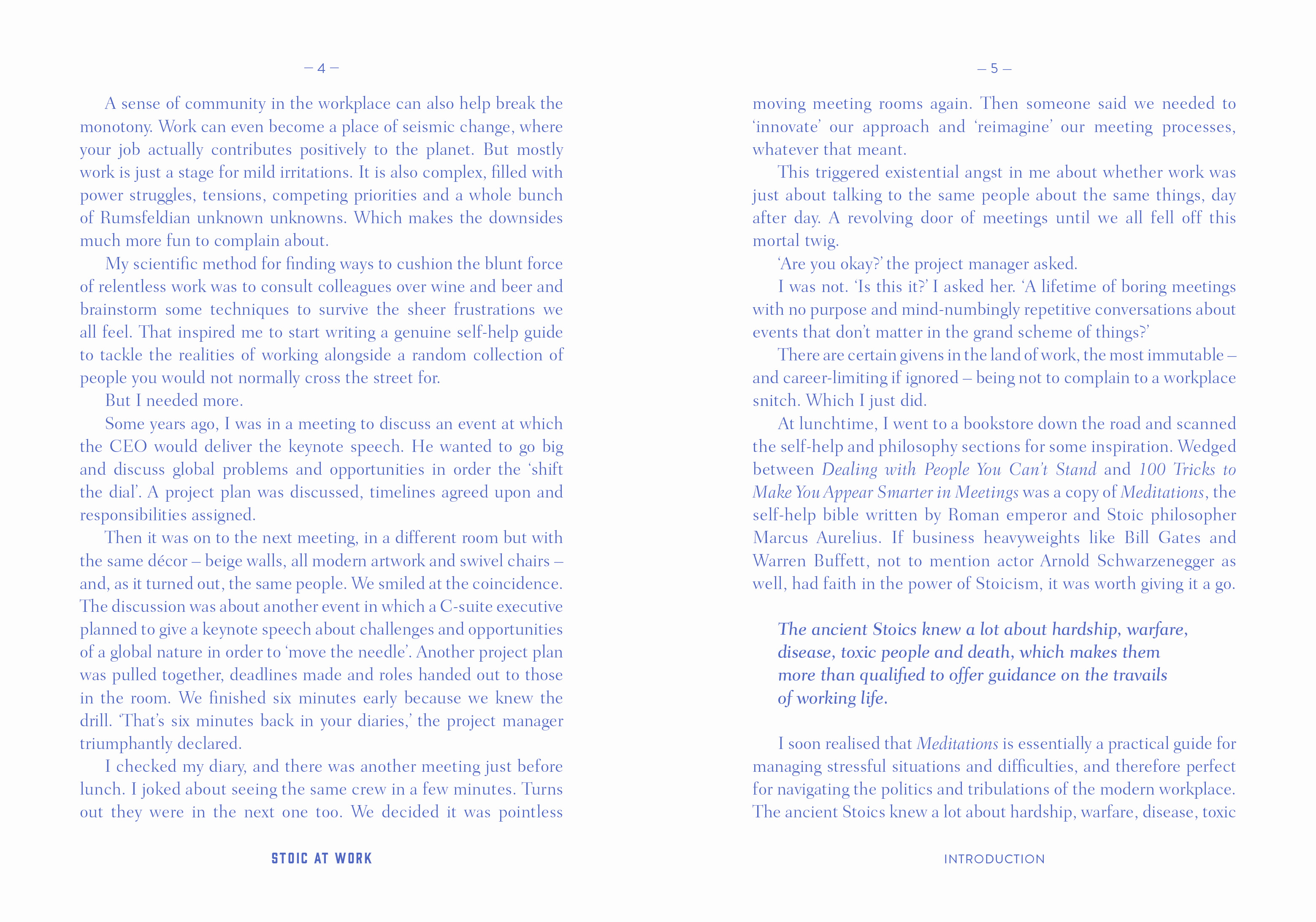 Stoic at Work is for anyone with a job, applying ancient wisdom to the modern workplace set out in 49 rules, such as: think less; suck up but don't suck up; avoid irrelevant meetings; and remind yourself that work happiness sits somewhere on the spectrum between fear and boredom. These will help you manage the mind games, the meltdowns and the numbing reality that most of us must work until we die, transforming your experience of work from a place of irritation to a place of joy. Or one that is a bit more tolerable, at least.