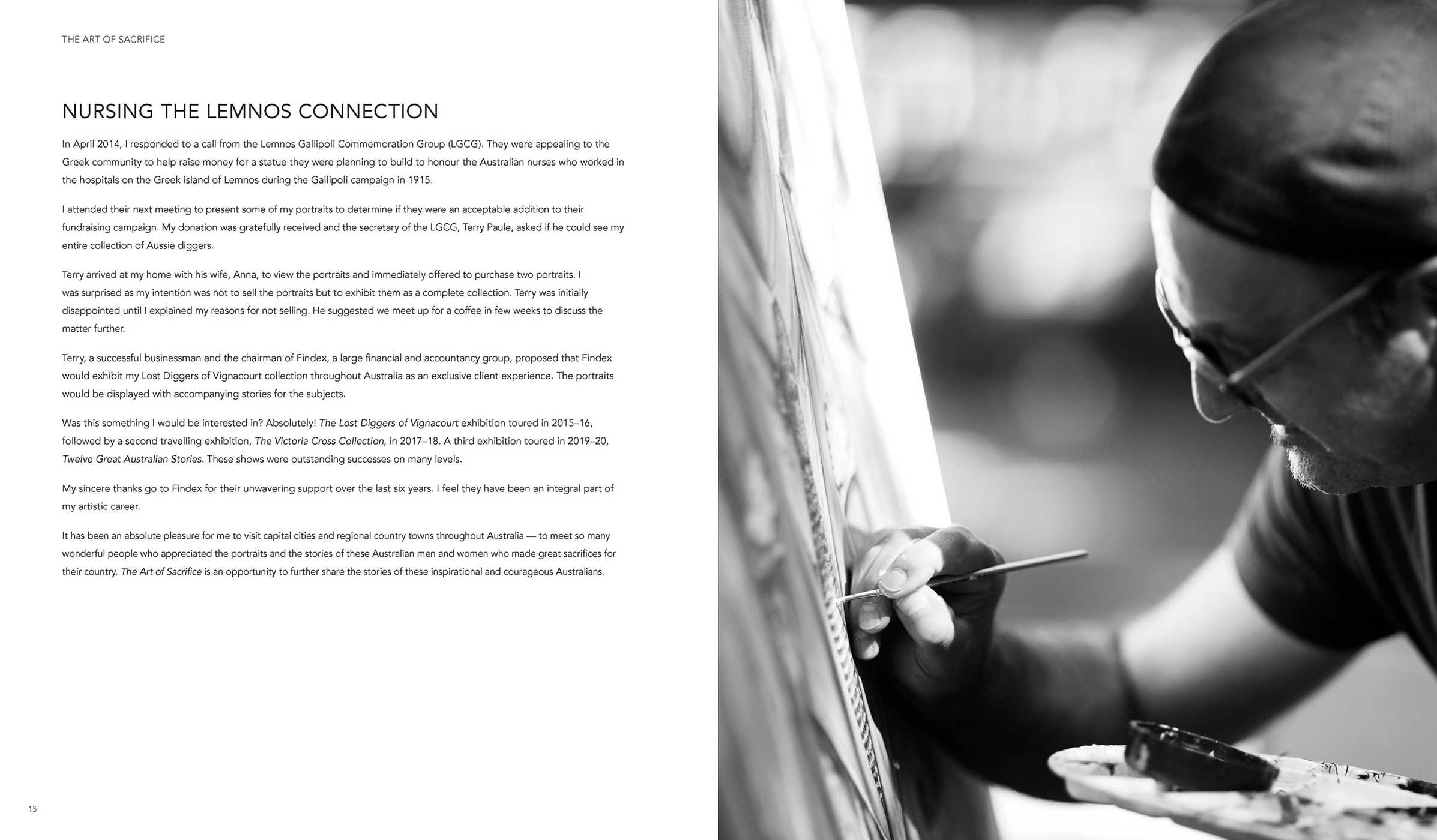 Using images of the past and the stories of today, the artist travels Australia and overseas to connect the past and the present in a unique, powerful and evocative collection of outstanding portraits. The Art of Sacrifice is a stunning contribution to the understanding and commemoration of all those who have served our great country.