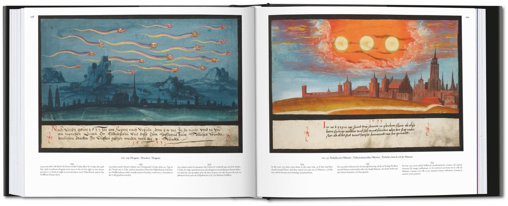 The near-complete illustrated manuscript, created in Augsburg around 1550, is composed of 169 pages of large-format illustrations in gouache and watercolor, depicting wondrous and often eerie phenomena.