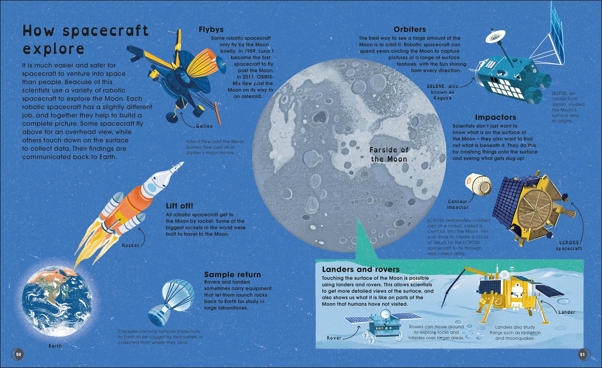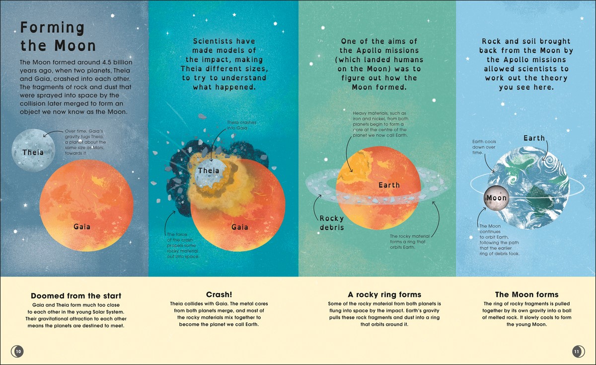 Boasting beautiful illustrations by artist Dawn Cooper, combined with up-to-date images from space agencies such as NASA and ESA, info panels, timelines, and diagrams, that help demystify and explain the wonder of the Moon, this is the perfect book for young readers.