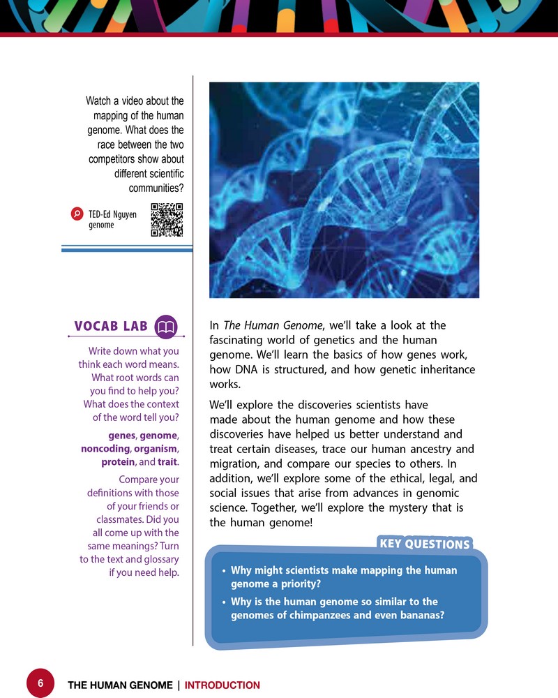 Combining hands-on activities with history, biology, and chemistry, The Human Genome offers entertaining illustrations and fascinating sidebars to illuminate the topic and engage readers further. The Human Genome integrates a digital learning component by providing links to primary sources, videos, and other relevant websites. Text-to-self and text-to-world connections make learning applicable and fundamental.