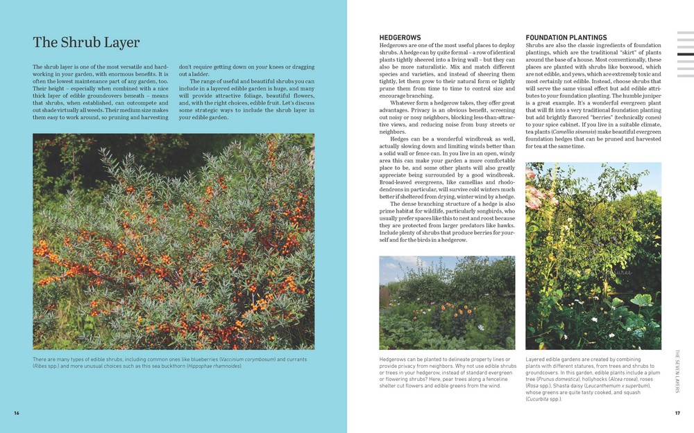 edible plants from 8 different layers (trees, sub-canopy trees, shrubs, vines, perennials, annuals, ground covers, and edible roots) in your home garden, you'll be building a mini