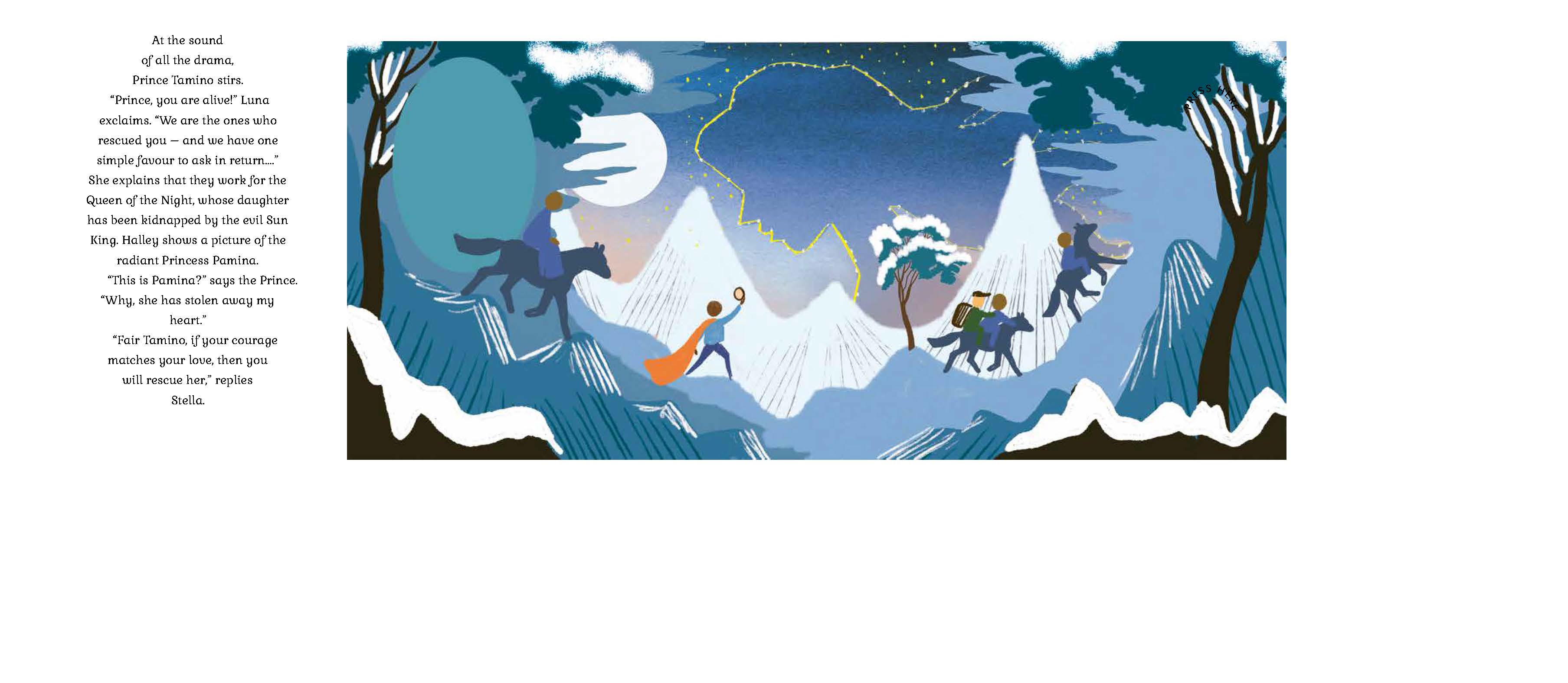 Discover the sorcery of The Magic Flute in this musical retelling of the opera - push the button on each beautiful scene to hear the vivid sound of an orchestra playing, and singers singing, from Mozart's score.