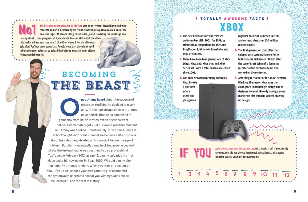 From the Totally Awesome World series for middle-grade readers, this book covers all the major highlights of MrBeast’s YouTube channel (which has the most subscribers in history, btw!) and business pursuits, including his favorite way to serve up a Beast burger. Discussions of entrepreneurship and philanthropy and fun facts, quizzes, and trivia are accompanied by plenty of graphics and illustrations, for an engaging guide to our favorite YouTuber.