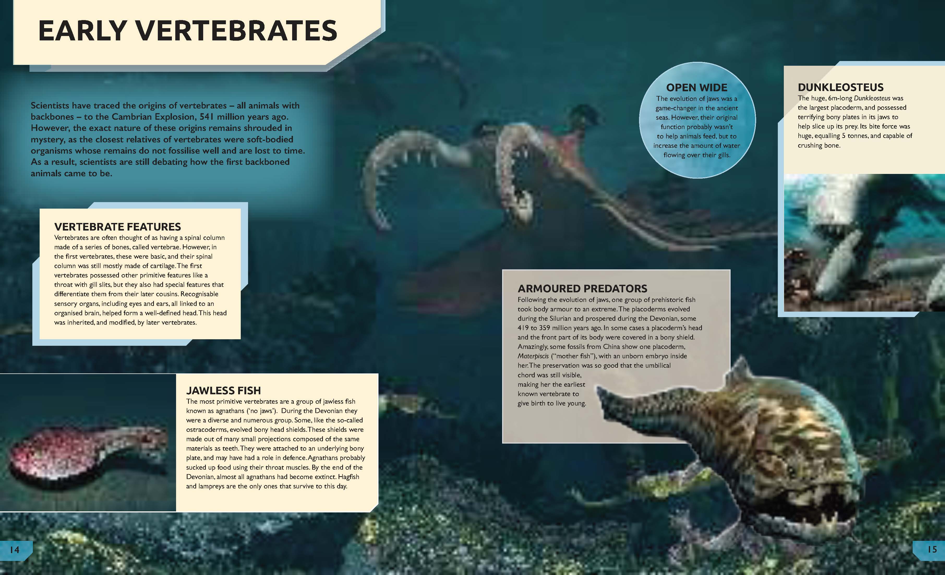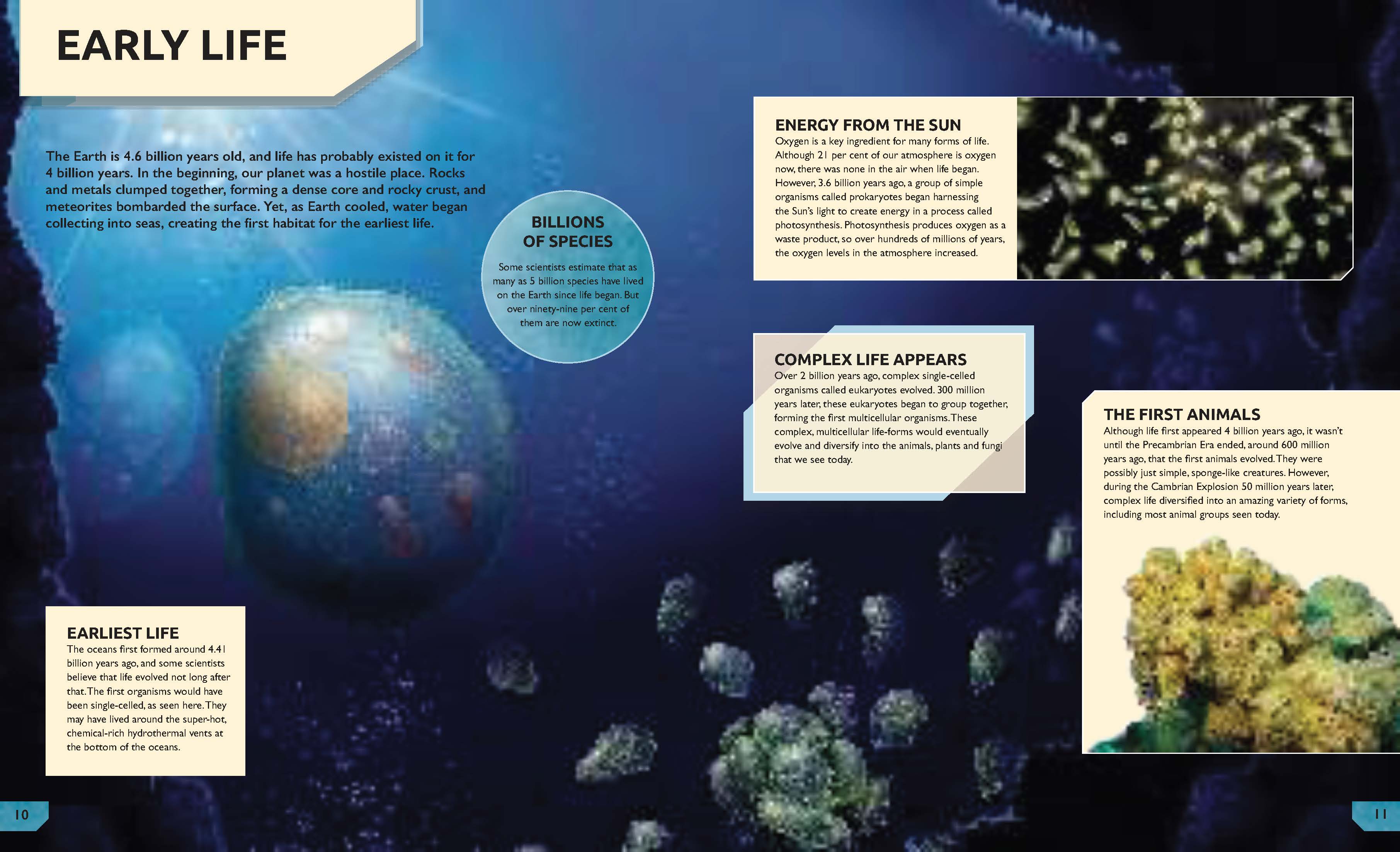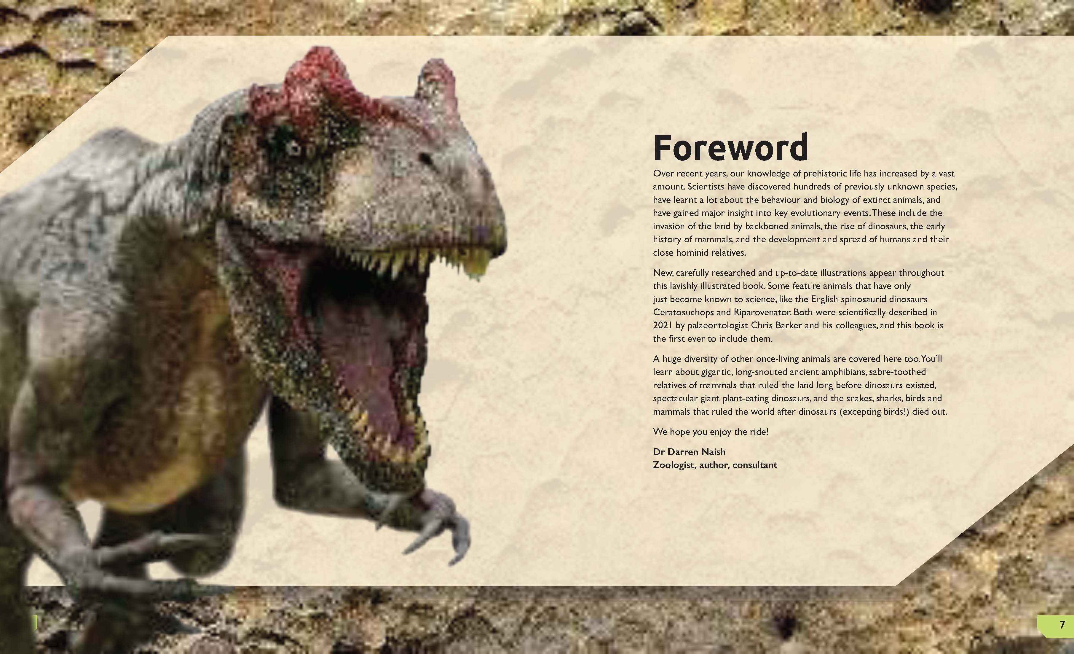 The book explores every era of prehistoric life, beginning with the origins of life in the world's oceans, moving to the first land-based vertebrates, and on to the reign of the dinosaurs and beyond. Based on only the most modern and authentic science, some familiar dinosaurs take on a whole new appearance. See these majestic creatures in their natural habitat, understand their parallels with modern animals, and learn everything about how they moved, ate, fought and hunted.