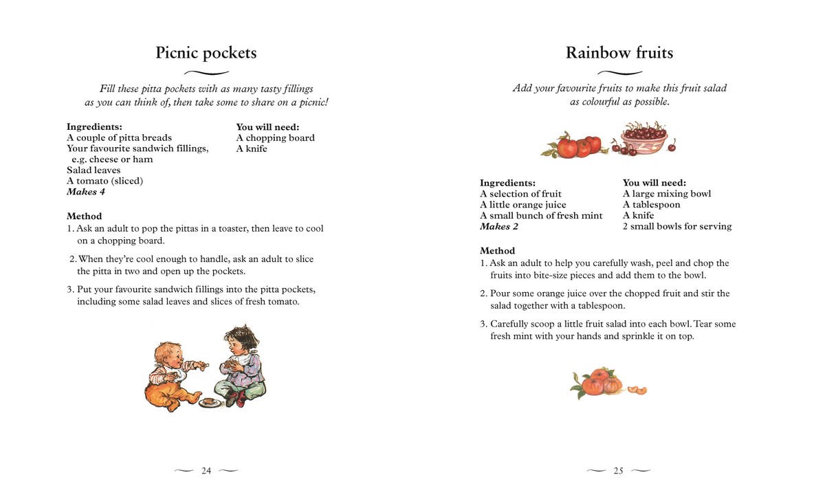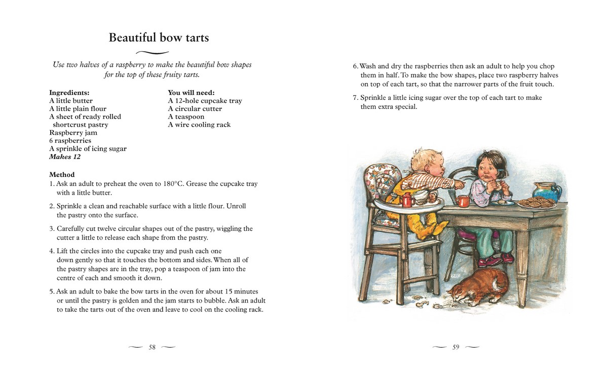 This classic collection of easy-to-follow recipes, inspired by everyday family adventures, is the perfect introduction to cookery for first readers. From making pancakes with Dad, baking apples after the Saturday shopping or even icing a birthday cake for Mum, this sumptuously illustrated recipe book gives a gentle insight into the joy of cooking together.