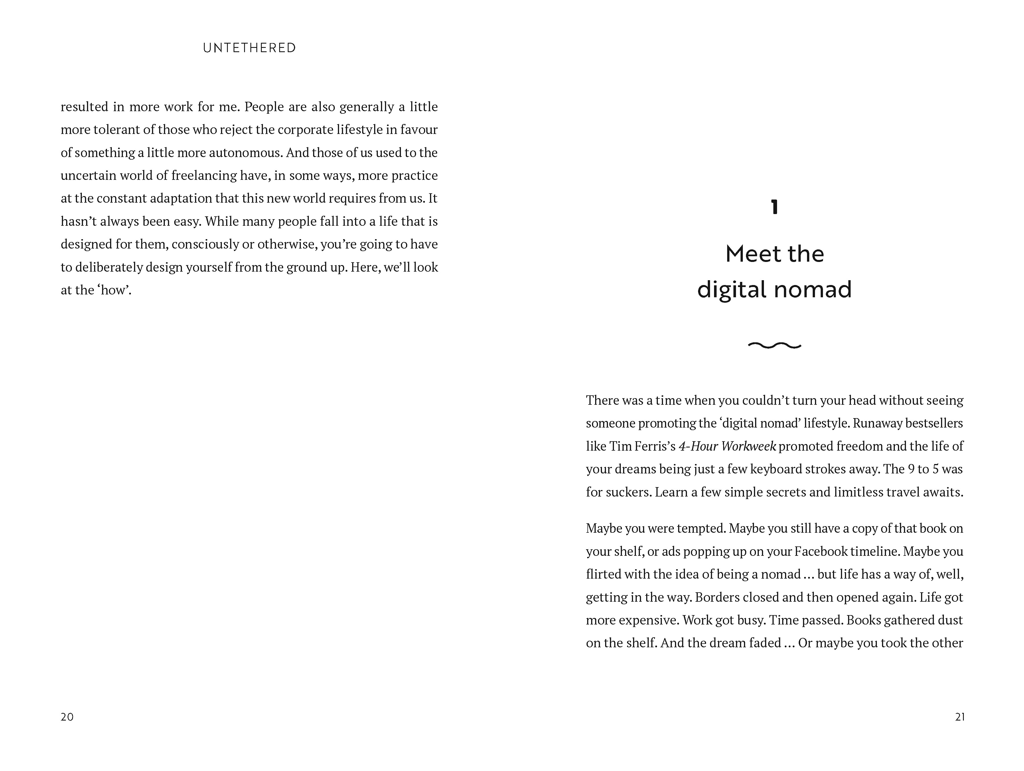 The dream of being a digital nomad has inspired many to quit their jobs and attempt to live a life that is global and free of the daily 9 to 5 grind. To travel to exotic lands, meet interesting people, and enjoy limitless adventure - all while earning money from a few strokes of the keypad. But many find themselves frustrated in pursuit of this dream. The realities of a digital nomad life are far from simple, and with the pandemic of 2020 and ongoing global uncertainty, the complexities of life on the road have become even more challenging to navigate. Yet with these challenges have come opportunities: remote work is no longer an exception, but a very real option within reach of many of us. With more and more businesses being started and with corporations having a seemingly endless appetite for new talent, the opportunities for workers to establish themselves as digital nomads are abundant. In Untethered you'll learn exactly what it takes to engineer a digital nomad lifestyle in a post-pandemic world. With travel stories and case studies interlaced with clear, real-world guidance, you'll discover whether the digital nomad lifestyle is for you and equip yourself with the tools to create your own location-independent life.