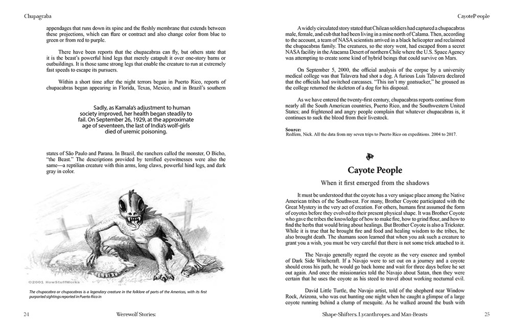 Weak vision, excessive thirst, a lack of tears, excess hair … Sound familiar? If so, you may have met a werewolf in human form! Throughout the ages and across cultures, werewolves have terrified populations and inspired blood-curdling stories of shape-shifters and man-beasts! Join the noted cryptozoologists and paranormal researchers Nick Redfern and Brad Steiger as they take a deep dive into the legends, the history, the hair-raising stories of werewolves, including … Fenrir, the wolf child of the giantess Angrboda and the god Loki, from the Old Norse myth of Ragnarok, Notorious serial killers, including Peter Stumpp and Michael Lupo, who thought themselves to be-and modeled their bloody crimes on-werewolves, The Basque butchers of Louisiana and the loup-garou, The secret terrorist group Organization Werewolf, established in 1923, and its possible allegiance to Adolf Hitler, Ghouls from Arabic folklore, the demonic Djinns that hover near burial grounds and sustain themselves on human flesh stolen from graves, And many more stories and histories of werewolves, night-stalkers, lycanthropes, and man-beasts
