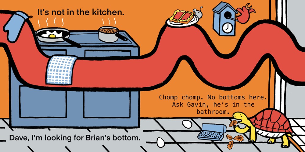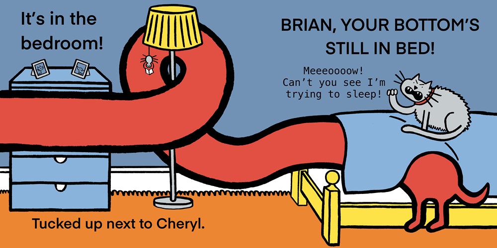 Can you find Brian's bottom? Where could it be? Have you looked in the hallway? Has Pauline the parrot seen it? Maybe it's in the living room, with Alan the hamster? Or perhaps in the kitchen with hungry Dave the tortoise? In the bathroom with Gavin the goldfish? Oh where could it be?